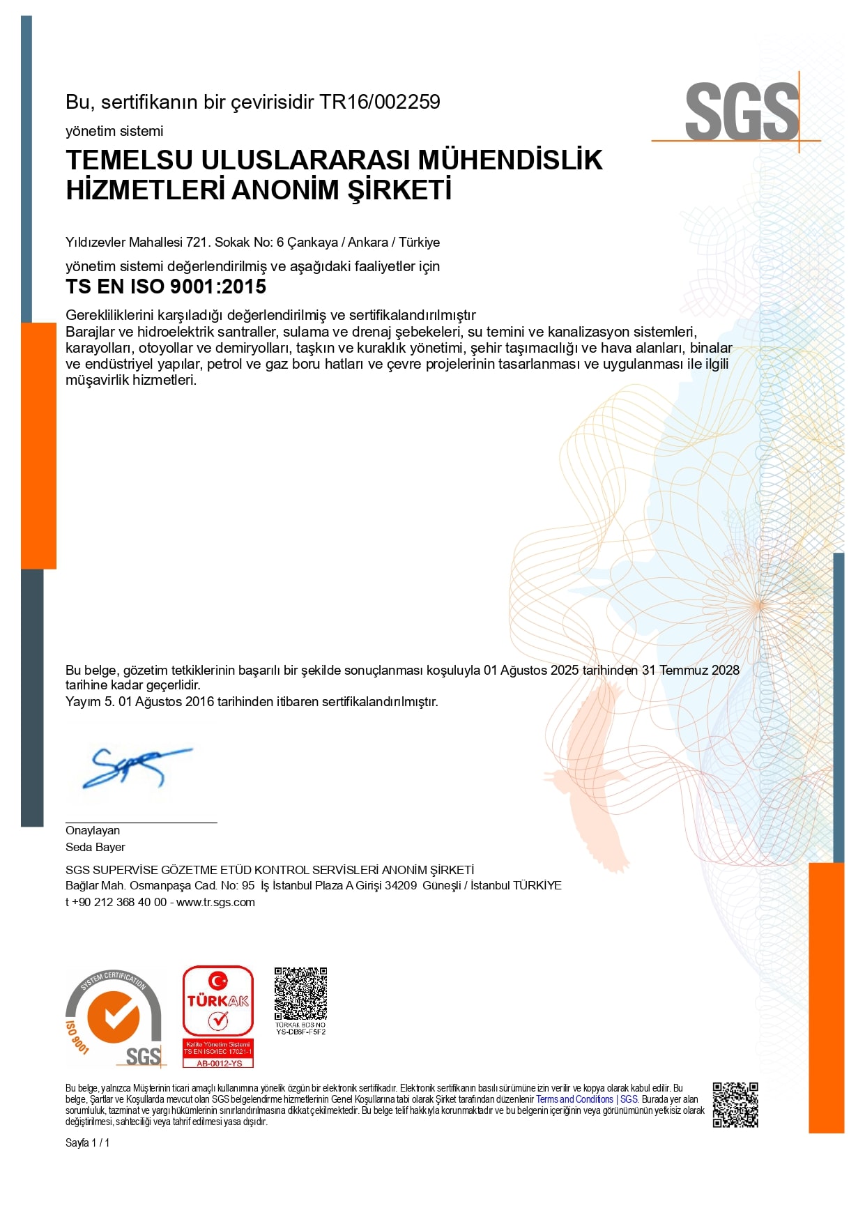Temelsu Uluslararası Mühendislik Hizmetleri A.Ş. olarak, sürekli ve kalıcı başarının Kalite, Çevre ve İSG yönetim sistemlerinin uygulanması, sürdürülmesi ve sürekli iyileştirilmesi ile sağlanacağına inanıyoruz.