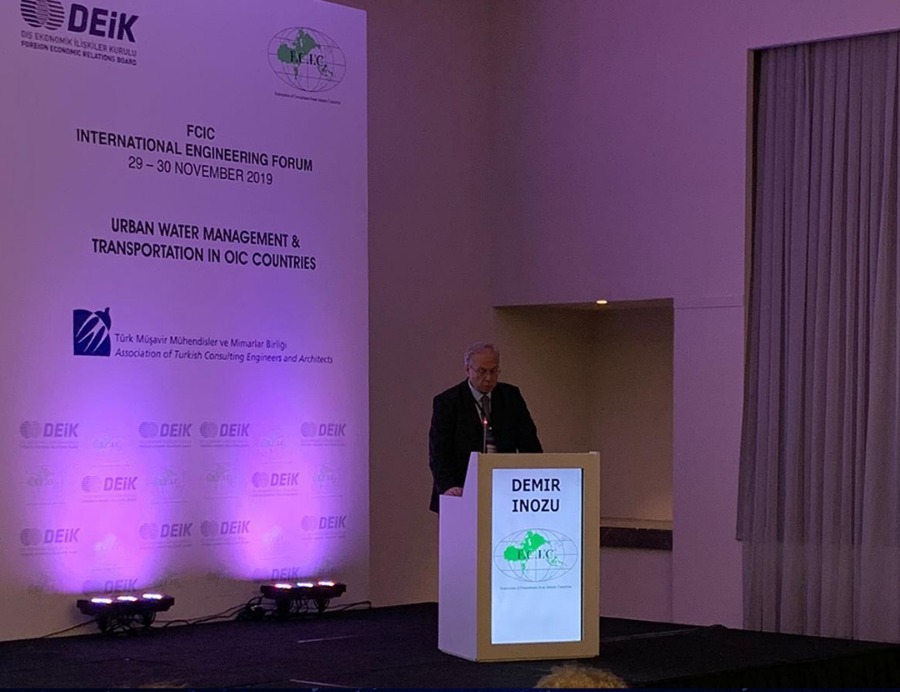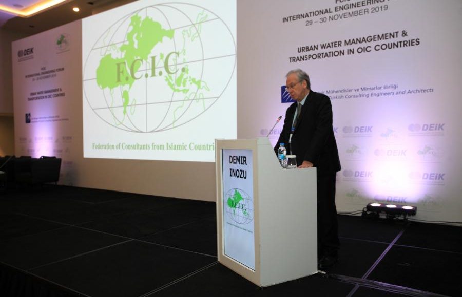 İslam Ülkeleri Müşavirler Federasyonu (FCIC) ve DEİK Uluslararası Teknik Müşavirlik İş Konseyi işbirliğiyle İstanbul’da 29-30 Kasım 2019 tarihlerinde gerçekleştirilen ”FCIC-DEİK Uluslararası Mühendislik Forumu”nun konusu “İslam İşbirliği Konferansı’na Üye Ülkeler’de Kentsel Su Yönetimi ve Ulaşım Projeleri” idi.
